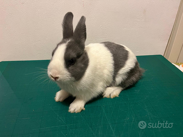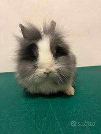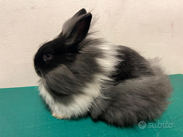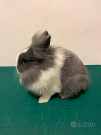 Regalo cuccioli di conigli Nani, 2 mesi di età, già svezzati. Incrocio con Ermellino e testa di Leone.