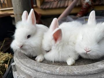 Salve vendo conigli nani bianchi occhi azzurri Stupendi 2 maschi e 2 femmine