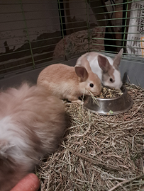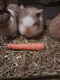 Conigli nani nati il 13 dicembre rimasti 4 cuccioli 2 a pelo lungo e 2 a pelo corto.