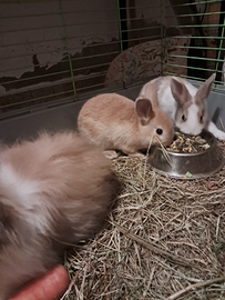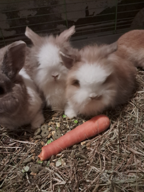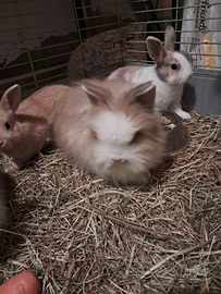 Conigli nani testa di leone. Rimasti 2 a pelo lungo e 2 a pelo corto. Nati il 13 dicembre.