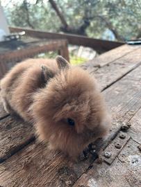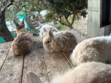 vendo coniglietti nani testa di leone, sono 5 coniglietti nati 1 a inizio ottobre 2025 e 4 a novembre 2025, disponibile anche la mamma bianca dei 4 cuccioli, ha gli occhi azzurri come alcuni dei suoi figli. Sono 4 maschi e 1 femmina sono alcuni marroni alcuni bianchi e altri con sfumature di marrone chiaro, sono docili, si fanno accarezzare, alcuni coniglietti hanno gli occhi azzurri e altri occhi marroni!!