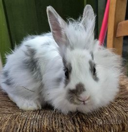 cuccioli di coniglio nano Testa di Leone di 2 mesi, nati e cresciuti in un ambiente familiare sereno.