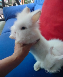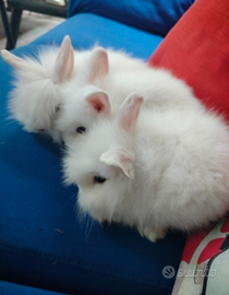 Conigli nani testa di leone femmine bianche occhi azzurri di 2 mesi già abituate al contatto umano cedo a euro 30 l una