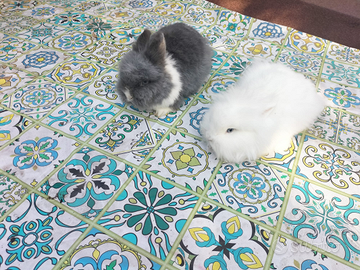 Conigli nani testa di leone di 3 mesi abitanti al contatto umano disponibile 1 maschietto grigio è una femmina bianca entrambi occhi azzurri come il cielo cedo a euro 30 cadauno