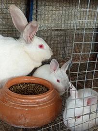Vendo circa 50 conigli . 6 fattrici giovani 1 sola monta . 2 maschi 35 conigli di 50 gg.. Vendo anche gabbia per fattrici e altrettante gabbie per conigli Per cessato allevamento Info whatsapp 3713146375