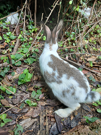 Vendo conigli nostrani di circa 2 mesi con particolare pelo a macchie. Prezzo cadauno o scambio concordato