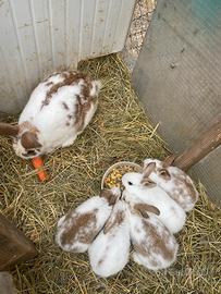 Vendo conigli sia da riproduzione che da macello ... I conigli ci sono di varie età ,in base all età cambia il prezzo . I più piccoli 25,00€ i più grandi 30,00