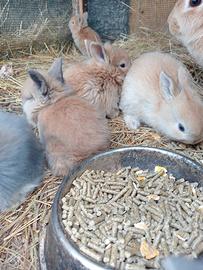 Conigli nani a pelo lungo e lepri del Belgio