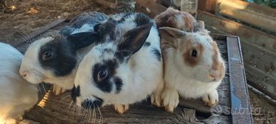 Disponibili conigli pezzati da carne di due mesi e mezzo sia maschi che femmine.... Per info anche whatsapp 3487152469