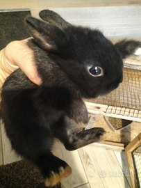Vendo conigli testa di leone di giorni 35 già autosufficienti disponibili varie colorazioni nero, grigio chiaro, grigio scuro