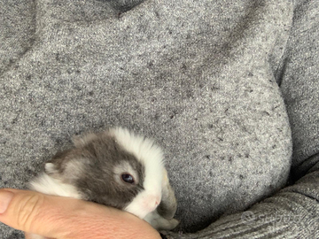 Coniglietti testa di leone nani, alcuni particolarmente piccoli, verranno ceduti ad 1 mese, il 18 dicembre, già autonomi ed abituati al contatto.