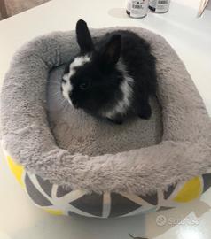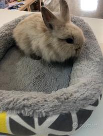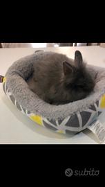 Conigli nani testa di leone nati il 5 dicembre 2025( quasi due mesi). Troppo piccoli per capire il sesso. Quattro colorazioni