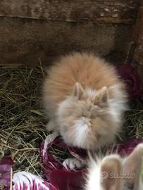 Disponibili 2 conigli nani testa di leone, sono gia autonomi e abbituati al contatto umano. Una femminuccia pelo corto e un maschietto pelo lungo, cedo a 12 euro cadauno solo a chi interessa veramente prendersene cura non considerandoli dei giocattoli. Ricordo che hanno bisogno di attenzione e un po di spazio per correre e non di una misera gabbietta. Se non siete disposti ad accudirli e a prenderli in braccio,non contattatemi che non ho tempo da perdere grazie
