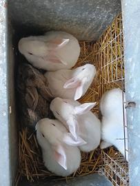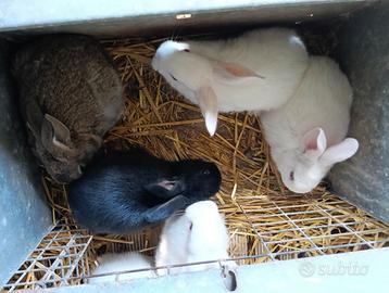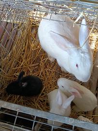Vendo conigli da carne bianchi, neri, marroni. Maschi e femmine Prezzo 10 euro ciascuno