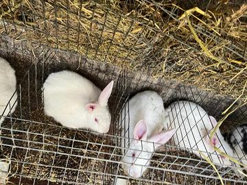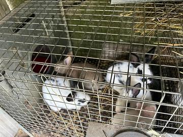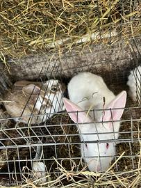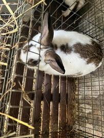 Disponibile Due femmine fattrice di cui una gigante piena alla fine del mese devono essere già piccoli Un maschio E 6 piccoli di 90 giorni 5 di 60 giorni 5 di 40 giorni Picoli 5/10 euro Grandi 40 euro cadauno Disponibile ritiro anche alla domenica