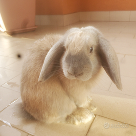 Cedo dolce coniglia nana ariete. Nata a maggio di quest'anno, devo cederla perché la famiglia è diventata troppo numerosa per i miei spazi.