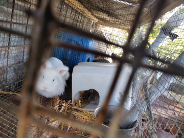 Splendida Coniglia testa Leone occhi rossi già in svezzamento con tre piccoli si cede per esubero
