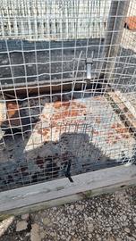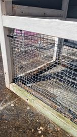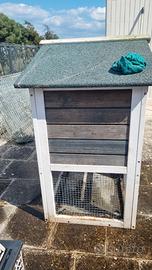 Conigliera in legno molto usata. Il colore è un po scolorito e l'acciaio della base arrugginito lievemente. Presenta alcune toppe di rete Nel complesso puo fare il suo utilizzo molto bene No spedizione, solo ritiro a mano