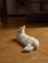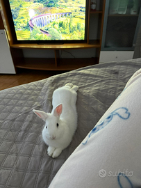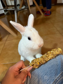 Meringa è una dolcissima coniglietta di soli 5 mesi, dal manto bianco candido e dal carattere adorabile. Cerco per lei una nuova famiglia che possa dedicarle le attenzioni e l'amore che merita.
