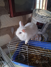 vendo coniglia femmina nana testa di leone di 3 mesi compresa di gabbia cambio con altro