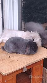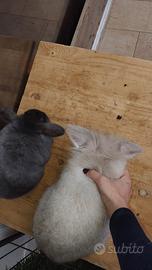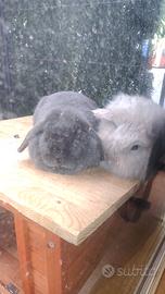 Regalo col cuore 2 Conigliette nane, una bianca di circa 2 anni ed una blu di circa 1 anno e 7 mesi. Di carattere docile anche se schive nel farsi prendere. Non hanno mai morso e se prese in braccio si godono le carezze. Le cedo perché avendo già un cane non ho molto tempo e spazio da dedicargli. Sono abituate a stare fuori anche d'inverno in città. Vorrei che se ne prendesse cura un amante degli animali.
