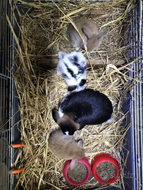Vendo cuccioli di ariete nano. Genitori visibili e docilissimi. Madre tricolore e padre colorazione siamese dotato di pedigree e marchio. Entrambi i genitori sono vaccinati e sverminati ed adatti alla PET teraphy .I piccini sono sanissimi. Accoppiamento avvenuto il 6 novembre e cuccioli nati il 7 dicembre. Colori : due cioccolato- crema ed uno bianco tinteggiato di nero in modo molto originale. Tra poco sarà piu' chiaro se maschi o femmine ( una femmina è già prenotata ). A breve svezzati e possono essere ceduti ( ai 2 mesi di età , quindi intorno al 7 febbraio ).Seguiti giornalmente da figura veterinaria.Buon prezzo, anche un minimo trattabile. Per info e / o prenotazioni chiedetemi pure, Carolina 3664643679.
