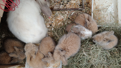 Cedo coniglietti mix testa di ariete e testa di leone , nati in dicembre 2025 .