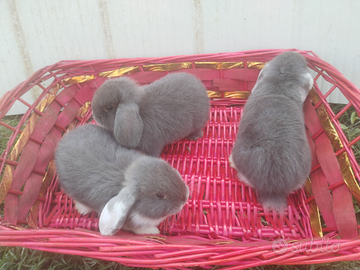 Cuccioli di coniglietti nani ariete colorazione blu di vienna