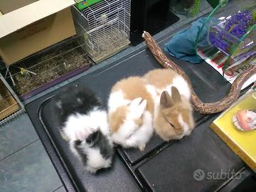 Bellissimi Coniglietti nani e ariete di poche settimane. Disponibili di diverse tonalità di colore. Disponibili anche criceti russi, criceti europei, gerbilli, minighiri africani, e porcellini d'india a pelo con diverse sfumature di colore. Disponibilità di gabbie di diverse dimensioni e colori e tutto l'occorrente
