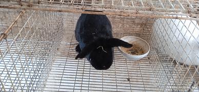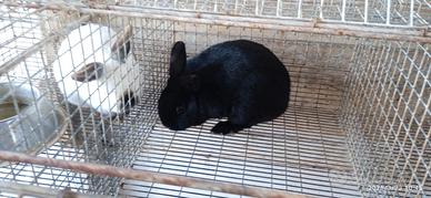 Vendesi otto conigli con le loro gabbie.