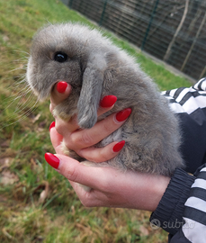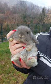 Bellissimo coniglietto minilop colorazione fata perlata. Nato il 12 gennaio, verrà ceduto a partire dal 12 marzo con ciclo di sverminazione effettuato, visita veterinaria e vaccino annuale compreso nel prezzo. Dolcissimo ed abituato al contatto umano. Abituato a stare sia in casa che in giardino. Ci troviamo a Benne, possiamo consegnare anche nei comuni di Collegno, Pianezza e Val della Torre.