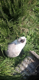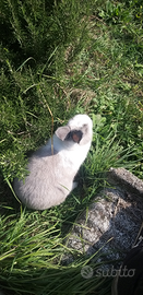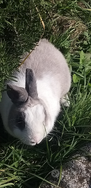 Stupendo coniglietto nano , bianco e grigio ... molto dolce ... a 4 anni, cedo solo x impossibilità di tenerlo ... veramente molto educato e socievole con bambini e persone , vaccinato e già castrato , d'accordo con gatti e altri conigli. Per info 3347676119
