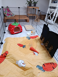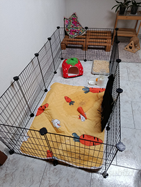 In aggiunta possiamo dare il recinto con incluso tappetino, cuccetta, abbeveratoio e porta fieno al prezzo di euro 30.