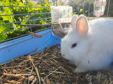 Vendo coniglietto nano bianco occhi azzurri completo di gabbietta, mangiatoia, bevitoia e accessori Tutto nuvo comprato il 10 dicembre 2025 No perdi tempo, no consegne, mi trovo a Carini No trattabile SCAMBIO CON UCCELLINO CON GABBIA