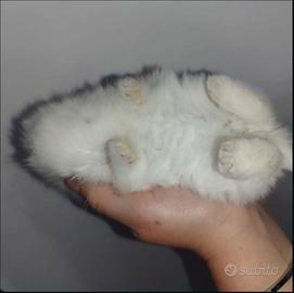 Coniglietto nano testa di leone nata in casa da coppia domestica. In ottima forma e salute, seguita dal veterinario dalla nascita. Genitori visibili e non supererà 1.5 kg Abituato da sempre al contatto umano e ad essere maneggiata infatti è abituata ad essere presa in braccio, pettinata e tagliata le unghiette. Simpatico, intelligente, morbido e dolcissimo Maschio tutto bianco