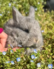 Coniglio ariete grigio con occhi marroni, femmina. Viene ceduta con il libretto sanitario attestante vaccinazione. È presente anche la foto dei genitori!