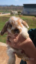 Bellissima cucciola di due mesi di coniglio ariete.