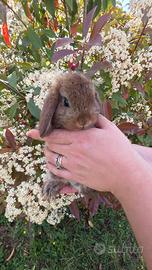 Disponibili splendidi conigli Ariete di 2 mesi, giá svezzati e sterminati pronti per una nuova casa. Sono dolcissimi, curiosi e abituati al contatto umano. Con il cucciolo verrá dato un kit di mangime e fieno per i primi giorni e tutte le informazioni per la corretta gestione. Adatti anche ai bambini. Solo per persone che rispettano gli animali e che riescano a prendersene cura. Per qualsiasi informazione contattatemi