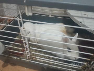 Salve come da titolo cedo 2 conigli, il maschio è un ariete occhi azzurri pelo morbido e bianco, adulto,femmina nana 8 mesi pelo morbido bianco, occhi bicolore ,x ki fosse interessato all'acquisto, prezzo ariete 40euro, prezzi femmina 20euro, non voglio perdere tempo con persone indecise grazie, PS: la femmina e in gravidanza, :)