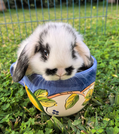 Disponibile splendido coniglio ariete di razza MASCHIO, dal bellissimo mantello bianco con occhi azzurri, dolcissimo e cresciuto con cura.