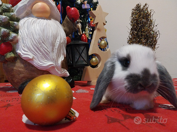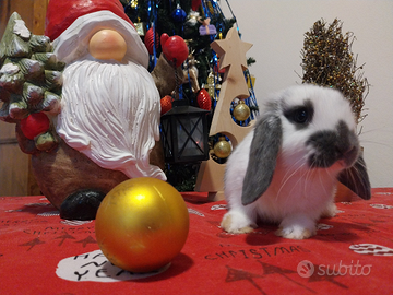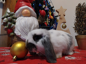 L'Azienda Agricola I coniglietti di Emma ha disponibile questo ultimo cucciolo maschio di coniglio ariete nano color bianco/grigio.