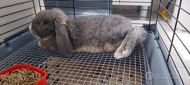 Vendo coniglio femmina di ariete nano , colore grigio con occhi azzurri , vendo completo di gabbia grande tutto 100 euro per info 331 932 1092
