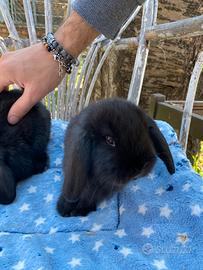 Allevamento Conigli di Lilly Disponibili per i primi di maggio coniglietti Ariete nano colorazione Blu, Total black e Fata perlata . I cucciolini sono nati il 7 marzo 2026 , resteranno con la mamma fino ai 60 giorni. Ognuno di loro ha il suo libretto sanitario personale firmato dalla veterinaria esperta e avranno Vaccino per la Mixomatosi annuale Esame Coccidi negativo Controllo denti no malaocclusione Controllo orecchie Controllo cuore Insieme darò tramite Whatsapp informazioni utili per la gestione del coniglietto Fieno di 1 taglio Per info contattatemi al numero Oppure sono su Facebook "Allevamento Conigli di Lilly, Instagram "I Conigli di Lilly TikTok "coniglidiLilly
