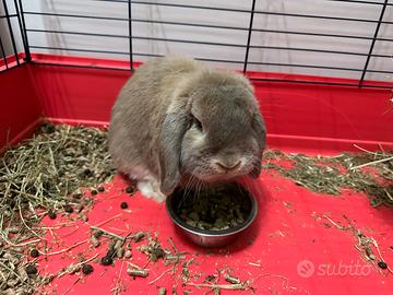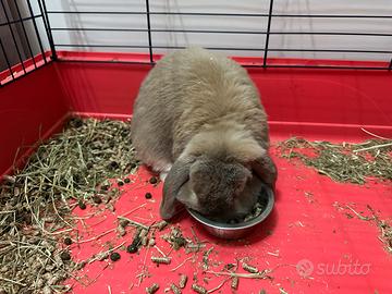 Coniglio ariete nano, circa 3 anni, maschio non sterilizzato. Molto dolce e affettuoso, carattere allegro e pimpante.