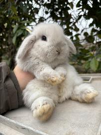 Cuccioli di coniglio ariete nano e arietexminilop in purezza, alta selezione per morfologia e genetica, color bianco .