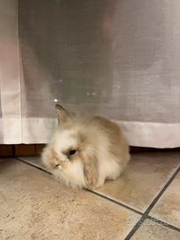 Cucciolo ariete nano di 2 mesi, color cappuccino, con libretto vaccinazione. Vendo con gabbia, fieno e mangime.