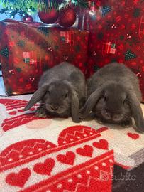 Vendo coniglietti ariete nano dolci, vivaci e coccolosi. Sono totalmente svezzati e indipendenti nel bere dal beverino. Sono abituati al contatto umano e non vedono l'ora di far parte delle tua famiglia per potere amore, coccole e tanta gioia!!