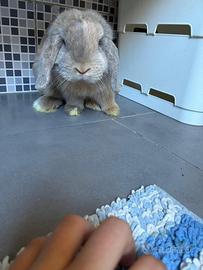 Coniglio ariete di 1 anno in piu la sua gabbietta usata dal coniglio