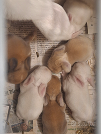 In vendita sei conigli bianco e marrone con sfumature. Papa testa di leone,mamma ariete nano. Zona Anzio