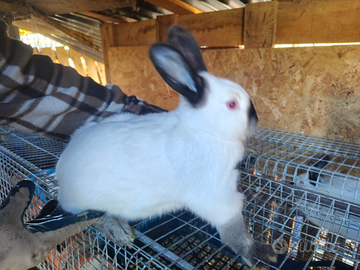 Conigli california in purezza figli di conigli comprati in mostra con ottimi voti provenienti da 2 distinte linee di sangue. Sono disponibili maschi e femmine. Hanno 2 mesi e mezzo. 35 euro l'uno. I conigli si trovano a Fagnano olona.
